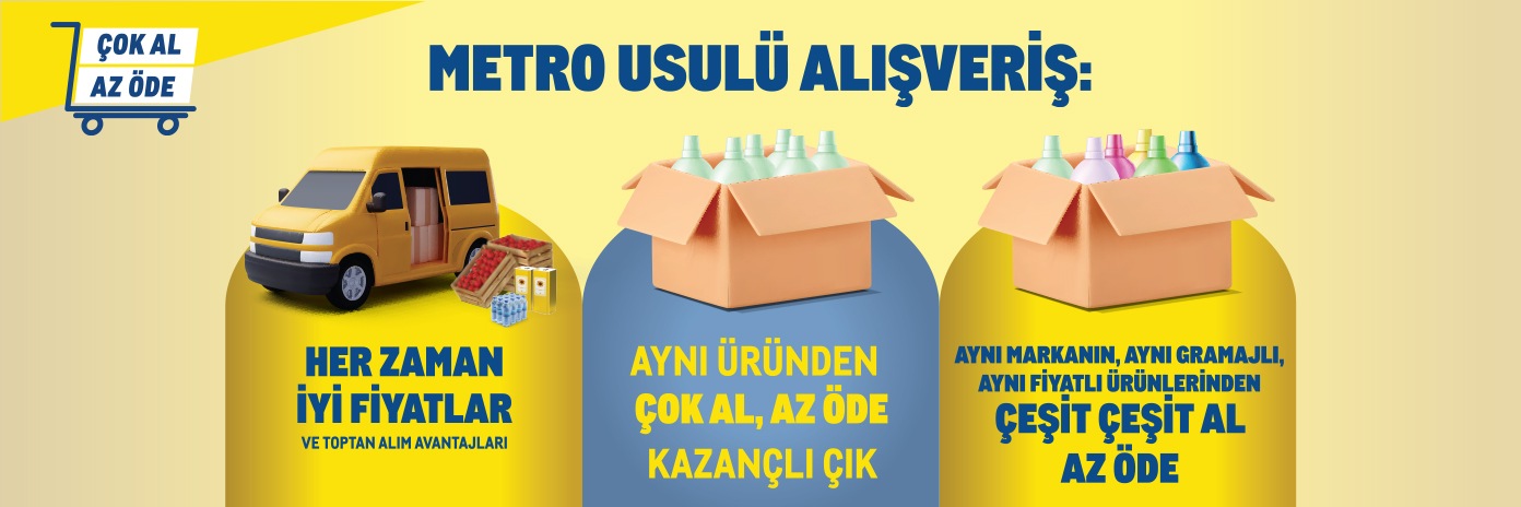 Metro Usulü fiyatlandırma modelimiz Çok Al Az Öde ile 3500 üründe çok iyi fiyatlı ve çoklu alınan ürünlerde birim fiyatından tasarruf sağlıyoruz.