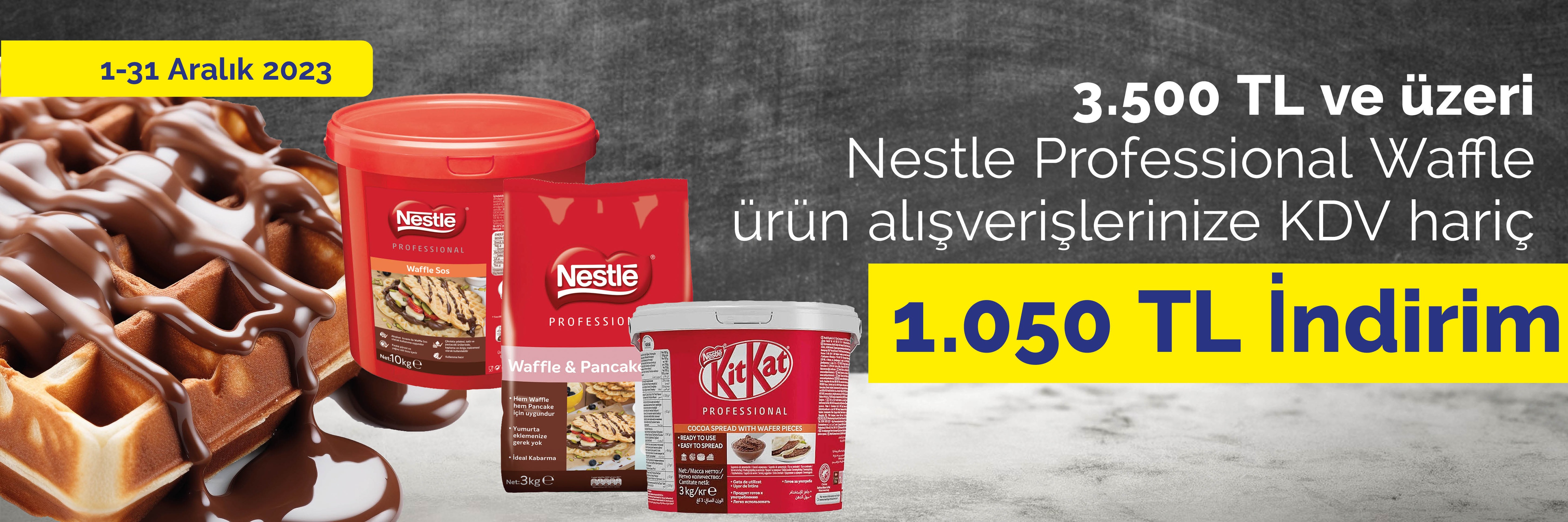 • Müşterilerin indirimden faydanalabilmek için belirtilen 3 Nestle Professional Waffle ürünlerinden KDV hariç 3.500 TL tutarında alım yapması gerekmektedir.