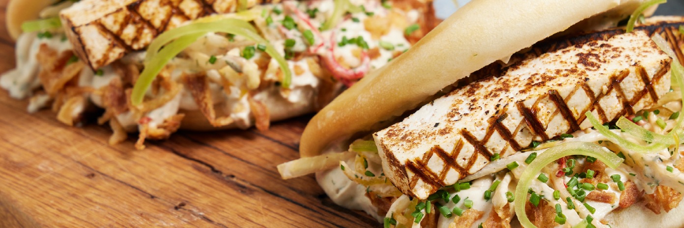 Bun ekmekleri içerisine sotelenen sebzeler ve ızgara edilen tofu peyniri konur, fermente süzme kaju, soya sosu ve hardal çırpılır ve bun üzerine eklenir. Son olarak kıtır soğan eklenerek servis edilir.