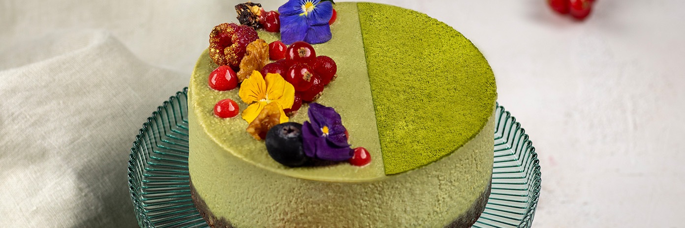 Matcha ve fermente kaju ile hazırlanarak geleneksel kek lezzetine modern bir yorum getirir. Matcha’nın aromatik tadı ve bitkisel içerikler bir araya gelerek hafif, ferahlatıcı ve besleyici bir tatlı alternatifi oluşturur. Menünüze fark katan, yeşil tonlarıyla öne çıkan, pişirme gerektirmeyen bir lezzettir.