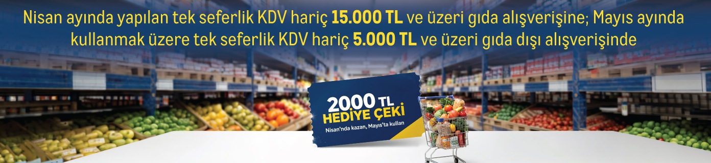 Kampanya kapsamında Nisan ayında yapılan tek seferlik KDV hariç 15.000 TL ve üzeri gıda alışverişine, Mayıs ayında kullanmak üzere tek seferlik KDV hariç 5.000 TL ve üzeri gıdadışı alışverişinde geçerli olacak 2.000 TL anında indirim hakkı sağlanıyor.