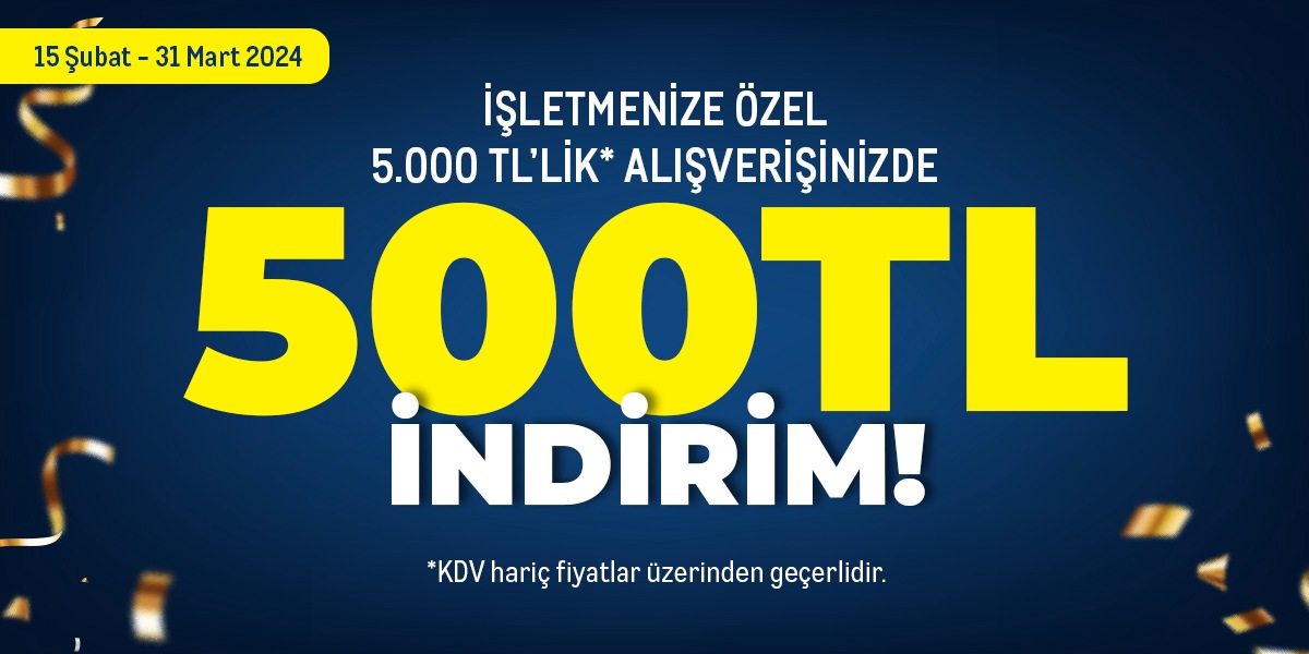 • KDV hariç 5.000 TL ve üzeri fiziki alışverişlerde kasada 500 TL indirim geçerli olacaktır.