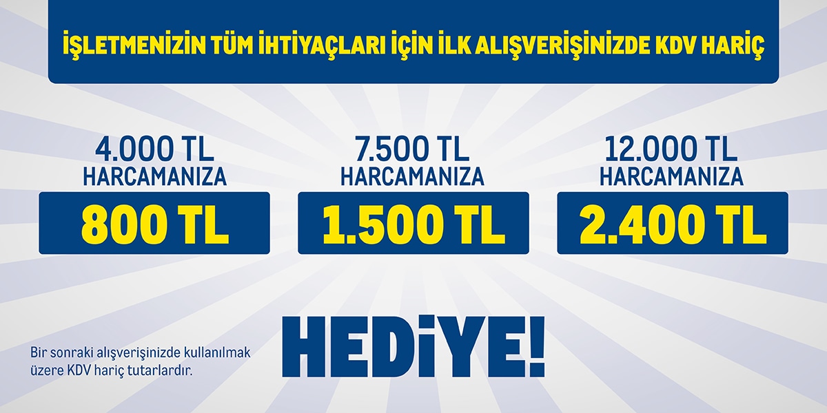 • İlk alışverişinize özel belirlenen alışveriş bareminin arasında kalan bir tutarda alışveriş yapmanız durumunda; alt bareme denk gelen hediye çekinden faydalanabileceksiniz. (Örneğin; ilk alışverişinizde yapacağınız KDV hariç 4.500 TL’lik harcamanıza, ikinci alışverişinizde kullanmak üzere KDV hariç 800 TL’lik hediye çeki verilecektir.)
