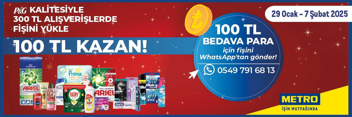 - Kampanya, tüm P&G ürünlerinde geçerlidir.Kampanya, Metro mağazalarından yapılacak fiziki alışverişlerde geçerlidir.