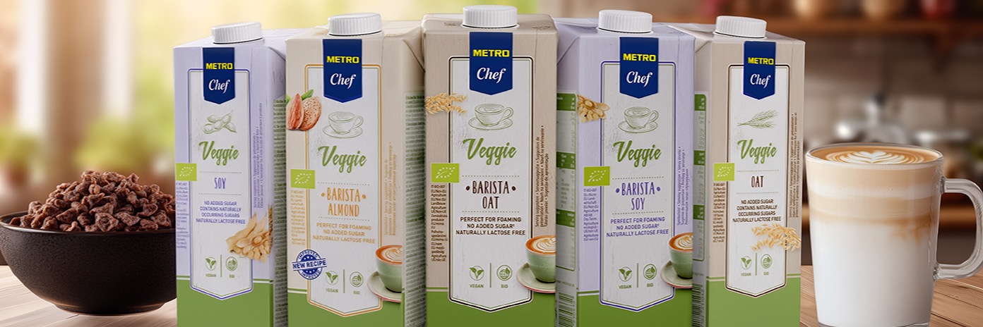 Yulaf, soya, badem ve hindistan cevizi gibi bitkisel kaynaklardan elde edilen 5 farklı lezzet seçeneğiyle Metro Chef Veggie Bio Barista İçecek Serisini deneyin!
