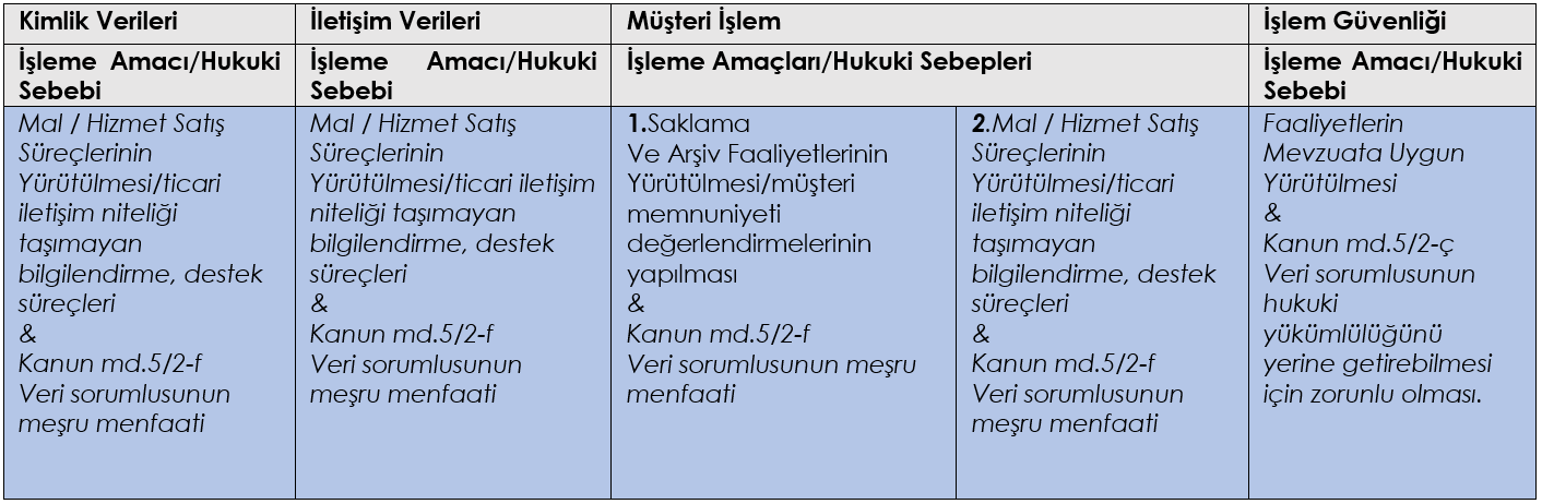 Aşağıda ayrıntılı olarak izah edileceği üzere, müşterilerimizle, ticari iletişim niteliği taşımayacak şekilde, Whatsapp (“WP”) iletişim platformu üzerinden gerçekleştirdiğimiz iletişim süreçleri vasıtasıyla başlayan veri işleme faaliyetlerinde siz müşterimizin kişisel verilerinizi işleme amaçlarımız, veri işlemedeki hukuki sebepler, verilerinizin kimlere ve hangi amaçlarla aktarılabileceği ve veri sahibi olarak mevzuat kapsamındaki haklarınız hususunda aydınlatmak üzere işbu Aydınlatma Metnini hazırladık.